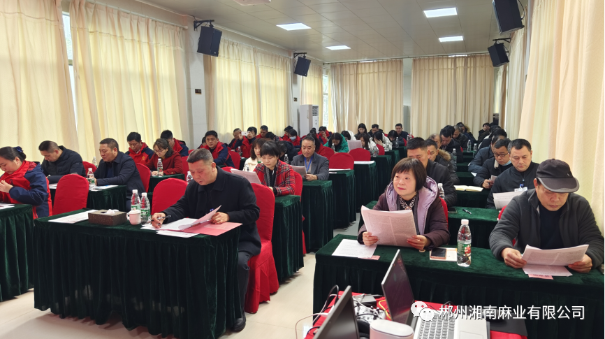 湘南麻業(yè)有限公司領(lǐng)導(dǎo)班子、全體中層干部認(rèn)真領(lǐng)會報告內(nèi)容